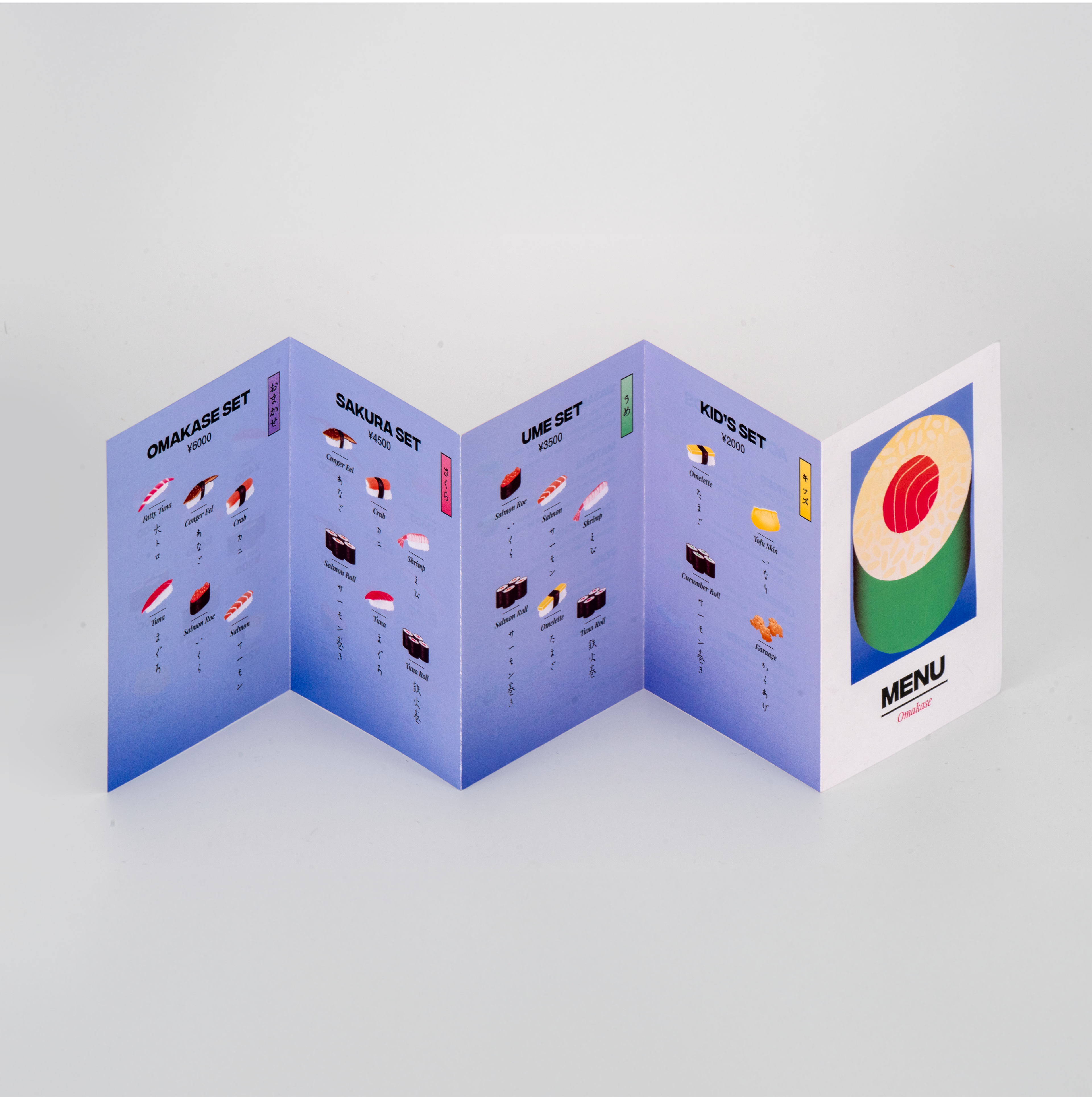 Your sushi guide. The Menu shows every sushi card with its price and sets, and includes a quick overview of the action cards, so you can check scoring at a glance, plan your turns, and go for the most valuable combinations.